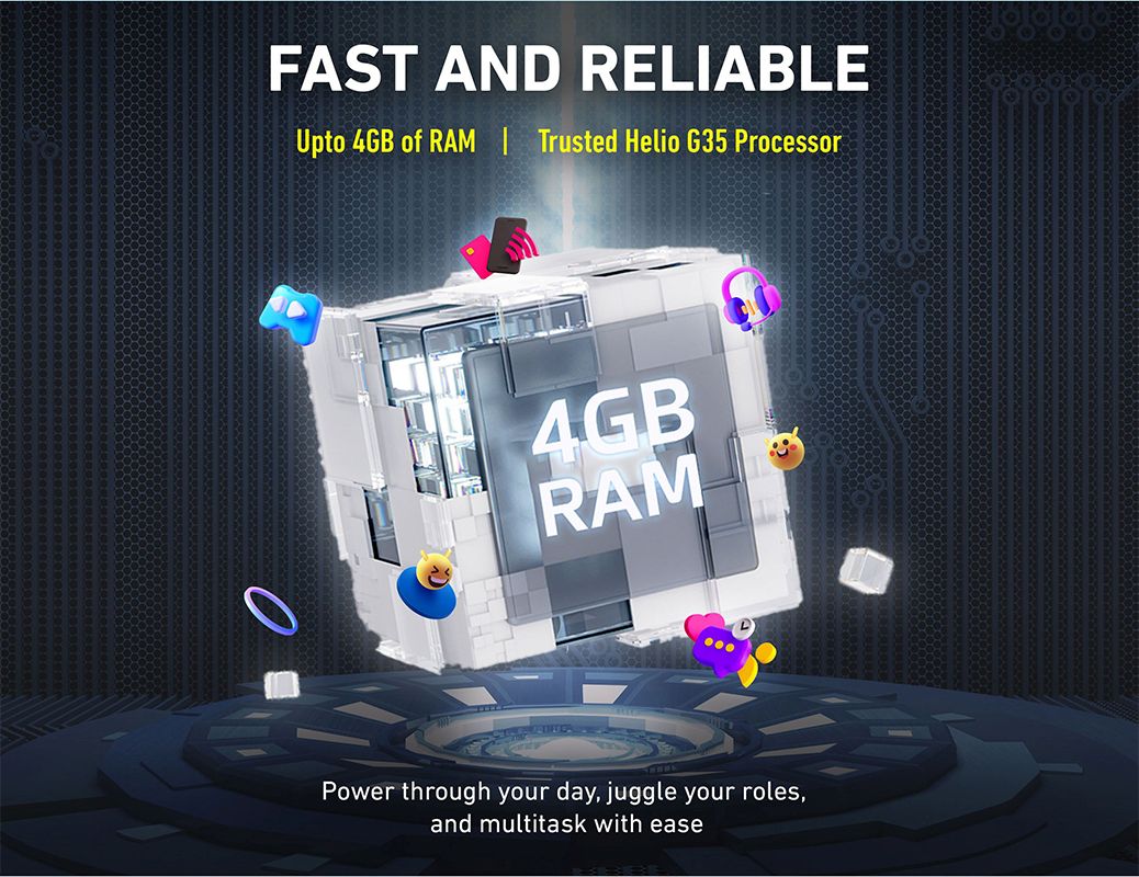 - Mediatek Helio G35 processor, Android 10 OS