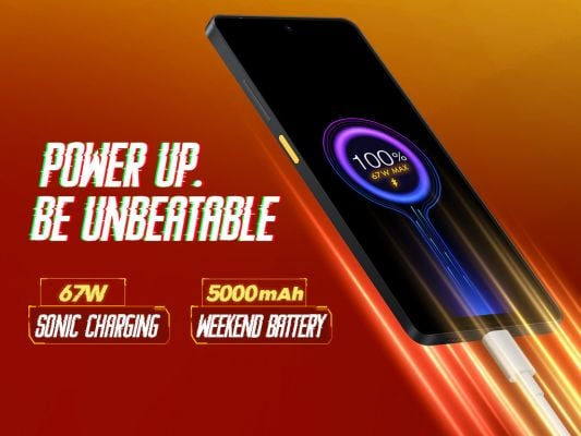 The Phone comes with a powerful 5000mAh Weekend Battery that ensures you are always on the move and 67W Sonic Charging that ensures you never run out of juice 24 x 7 x 365.