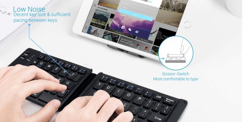 Folding design provides more convenience. Standard-size keyboard improves typing efficiency and comfort when working outdoors or traveling. Silent typing design allows you to focus more on your work.