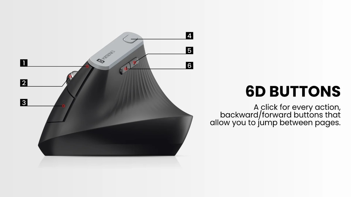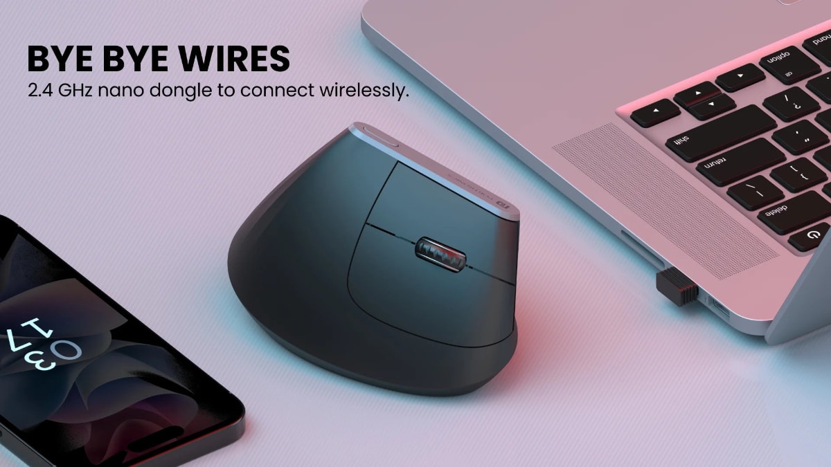 | Key Features | Vertical Ergonomic Design 2.4 GHz Wireless Mouse USB Receiver 6 Buttons Wrist Support Adjustable DPI |