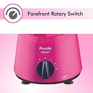 Preethi Galaxy 750W Mixer Grinder is very convenient to operate as it is equipped with a well-designed rotary switch that helps you to adjust the speed settings; It can be handled with added ease.