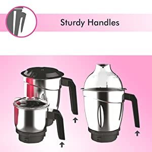 Preethi Galaxy 750 W Mixer Grinder is equipped with sturdy handles that allows you easy and tight grip of the jars. The sturdiness ensures safe usage of the appliance without any worries of sudden falling incident.