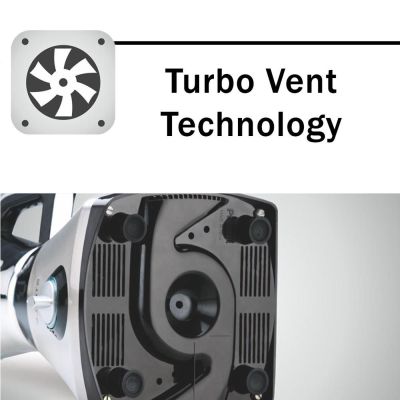 The Turbo Vent technology is an efficient innovation of Preethi kitchen appliances. This turbo vent technology is used in the ventilation system of Preethi Steel Max. This technology ensures that the heat generated by the motor does not affect the ingredients inside and jar. This keeps the mixer body cool and increases the life of the motor.