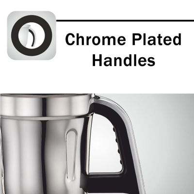 Preethi Steel Max mixer grinder comes with exclusive chrome plated handles. Chrome plated handles add a touch of style while being ergonomically designed for your comfort. Designed for easy and comfortable handling, the handles also look stylish and classy with its unique design.