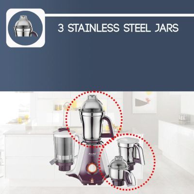 Preethi Taurus comes with 3 stainless steel jar that fulfills multiple grinding needs.