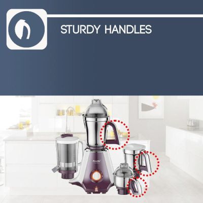 The Preethi Taurus comes with sturdy handles that not only gives an amazing solid grip but also enhance the look of the appliance.