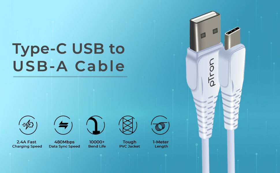 Charge your phone half the time with 2.4A USB charging. Great performance ensures your devices sync and charge simultaneously with up to 480Mbps transferring speed. pTron Solero T241 Type-C USB charging and data cable is ideal as a spare cable or replacement whether you are at home, in the office, in your car, or on travel.