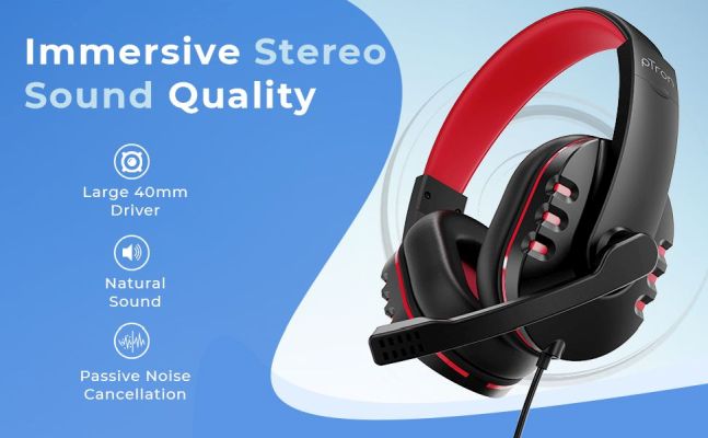 Device Protection Plan AddedPtron Soundster Arcade Hi-Fi Gaming Wired Headphone with Adjustable HD Mic, High Bass Passive Noise Cancellation (Black/Blue)