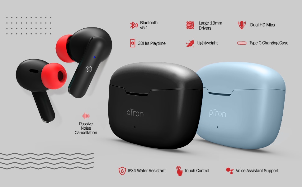 | Key Features | Built-In Dual HD Mic for Stereo Phone Calls 32 hours combined playtime with case 13 mm Dynamic Driver for Immersive Stereo Sound with Deep Bass Bluetooth v5.1 with Strong 10 m Wireless Connectivity 1-Step Pairing Quick Connect & Auto Re-Connect Touch Control Earbuds with Voice Assistant Support On-The-Go Charging Case for Extended Playtime with Type-C Fast Charging |