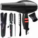 QUKTION hair dryer 1500watt with 522 hair straightener,471 hair curler and tailcomb black