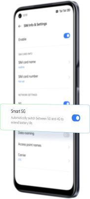 As 5G consumes more power than the traditional 4G, it may shorten the phone's battery life. Introducing the Smart 5G technology on realme 8 5G - the phone intelligently switches between 4G and 5G depending on the usage scenario to save battery!