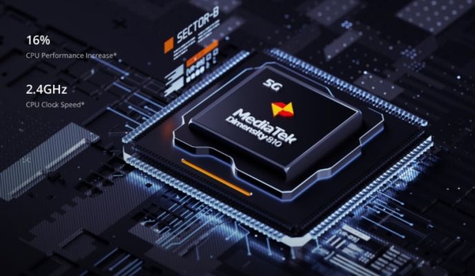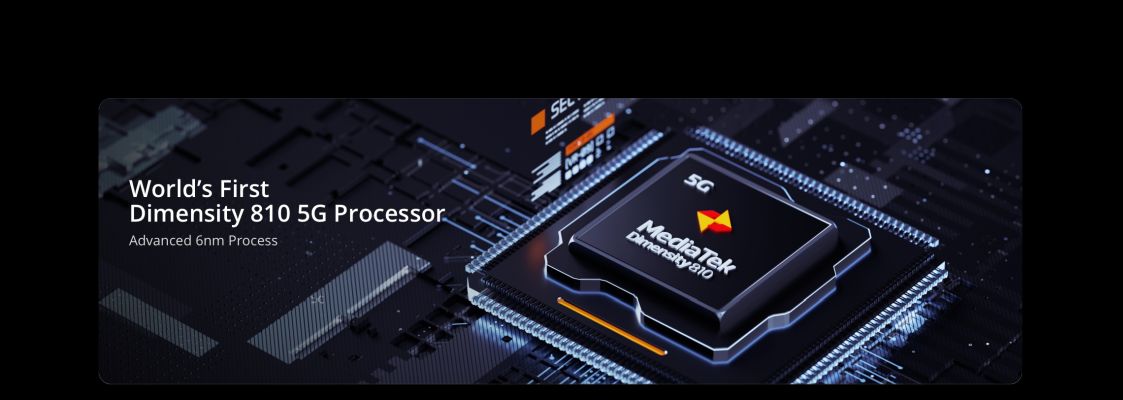| Processor | Advanced 6nm Process MediaTek Dimensity 810 Next-Gen 5G, CPU: Octa-core, up to 2.4GHz, GPU: ARM Mali-G57 |
