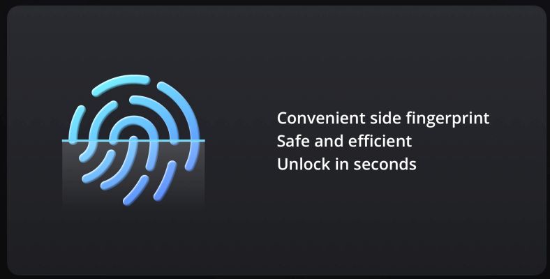 - Side mounted fingerprint sensor