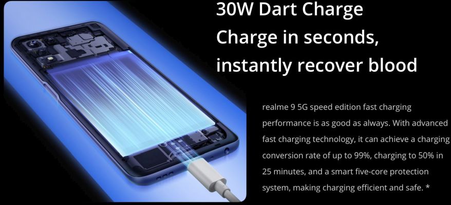 - 30 Watts Dart charge, 5000 mAh Massive battery
