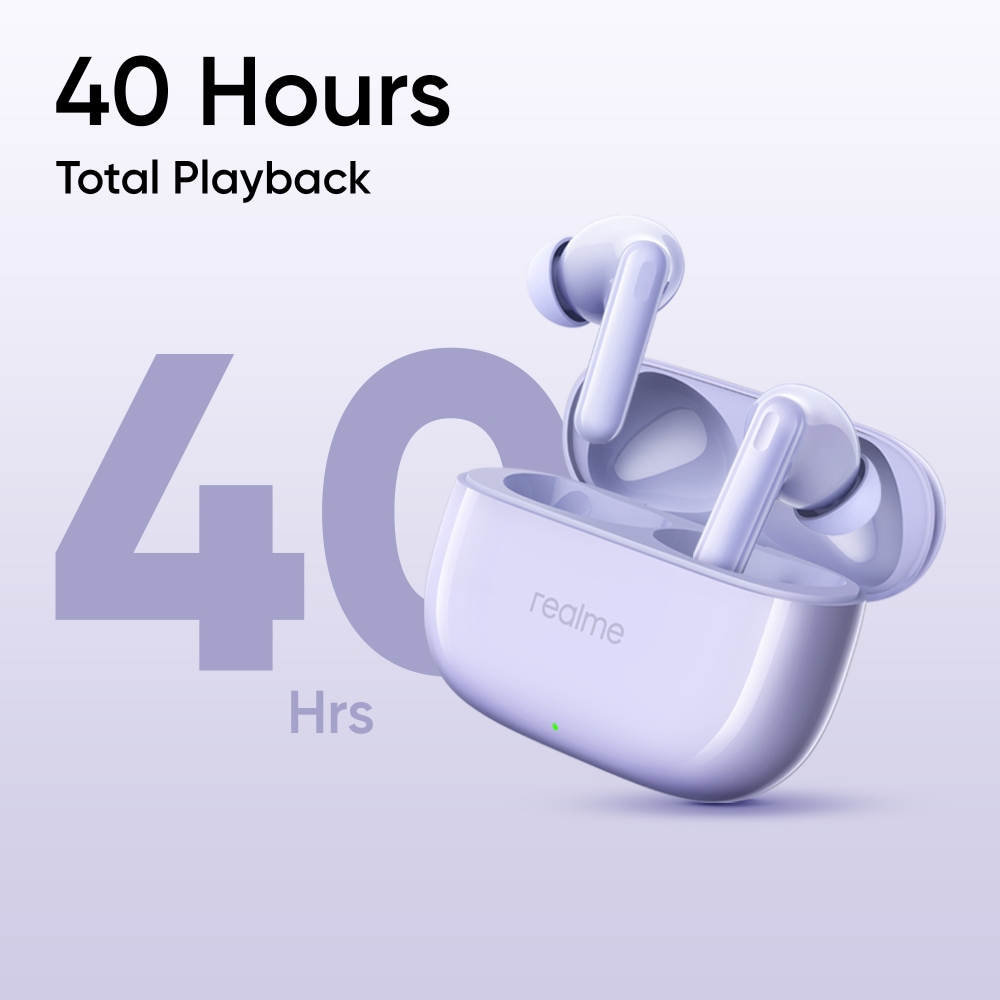 realme Buds T310 TWS Bluetooth Earbuds with 12.4 mm Dynamic Bass Driver, 40 Hrs Total Playback, Fast Charge (10 min Charge for 5 hrs Playback), Monet Purple