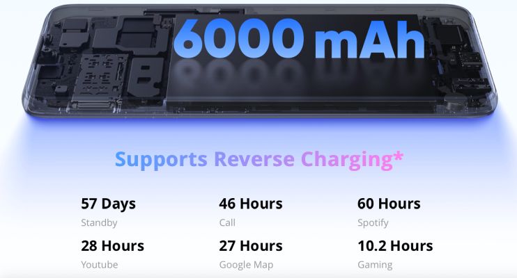 Get a super-long battery life with a massive 6000mAh high-capacity battery. Moreover, the reverse charging support turns your phone into a power bank, which means you can even charge your other devices with it. Time to say goodbye to low battery anxiety.