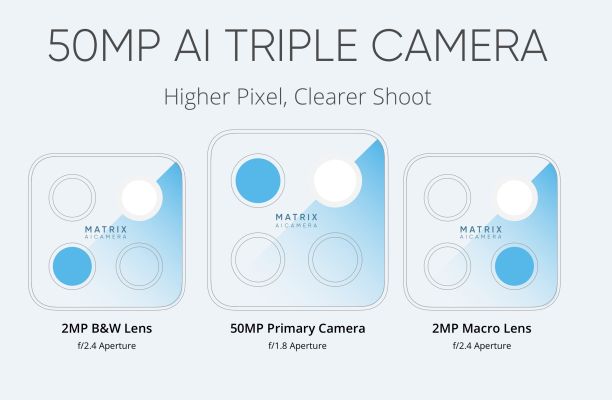 - 50 MP, 2 MP, 2 MP Triple Rear Camera