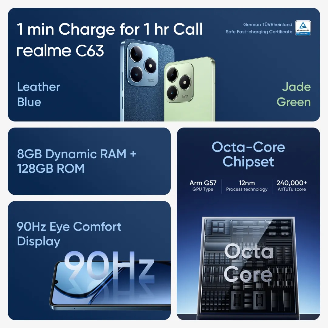 Realme C63 128 GB, 4 GB RAM, Leather Blue Mobile Phone