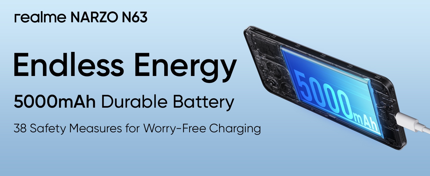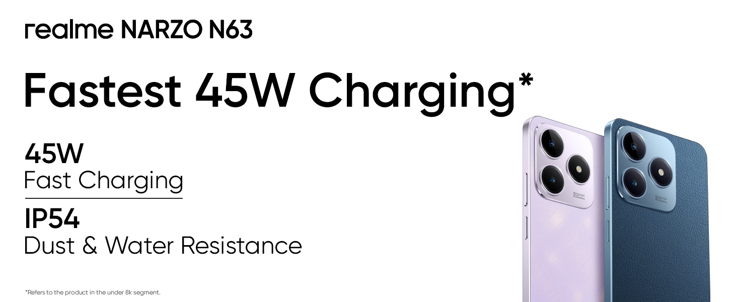 * This Realme Narzo N63 mobile phone image is for illustration purpose only. Actual image may vary.