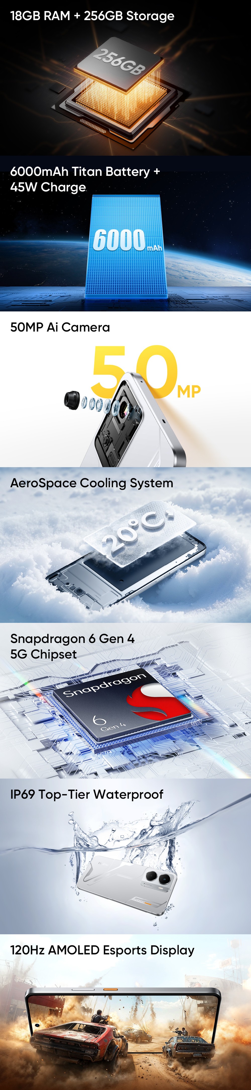 - Battery: 6000 mAh, 45 Watts Fast Charging