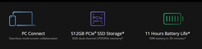 8GB dual-channel LPDDR4x memory allows for seamless multitasking. The 512GB Sprint PCIe SSD provides enough space to manage and transfer files with greater speed and efficiency. Even large files can download in an instant, and games run more smoothly than ever.