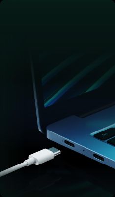 realme Book comes with a 65W fast charger that gets you to a 50% charge in just 30 minutes. It also supports up to 30W Dart flash charging for realme smartphones with a USB-C port, so you can keep your mobile devices powered while you're on the go.