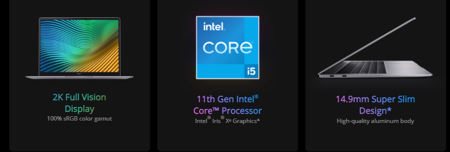 The 11th generation Intel Core i5 processor combines the new Willow Cove CPU architecture with advanced 10nm-class SuperFin technology. Single-core turbo frequency can reach up to 4.2GHz, offering a huge performance boost with remarkable speed.