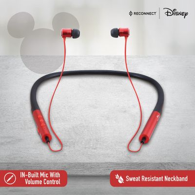 Device Protection Plan AddedReconnect Disney Mickey Mouse Wireless Neckband Earphone, Sweat resistant, 8hrs playtime, Bluetooth, Multipairing tech, Magnetic earbuds- DBTE301 MY