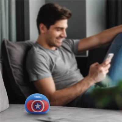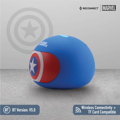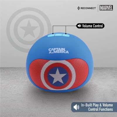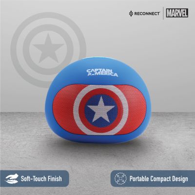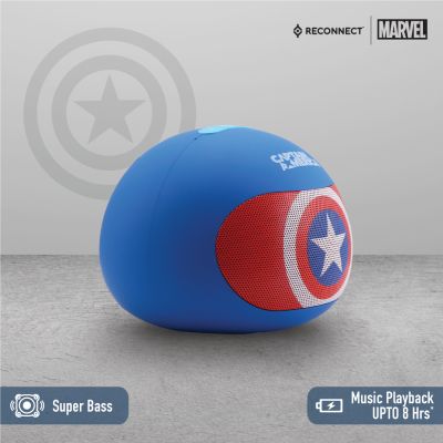 Device Protection Plan AddedReconnect Marvel Captain America 3W Wireless Bluetooth Speaker, Handsfree calling, Super Bass, 8hrs playtime, Built in play and volume controls, Personal speaker - DBTM103 CA