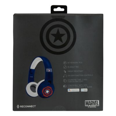 Device Protection Plan AddedReconnect Marvel Captain America Over the ear foldable Wireless Headphonewith built in mic, Sweat resistant, 8hrs playtime, multipairing tech, Trendy Design, with Siri/Alexa/GoogleOk - DBTH101 CA