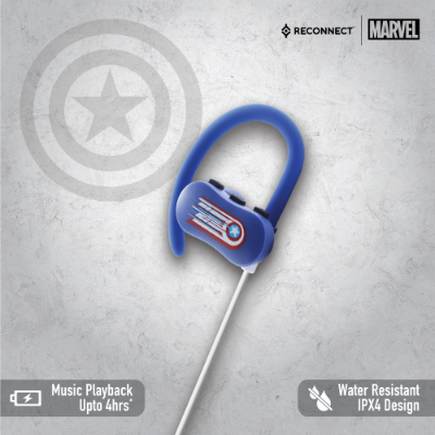 The Reconnect Captain America Beasty Buds Sporty BT Earphones are water and sweat resistant.