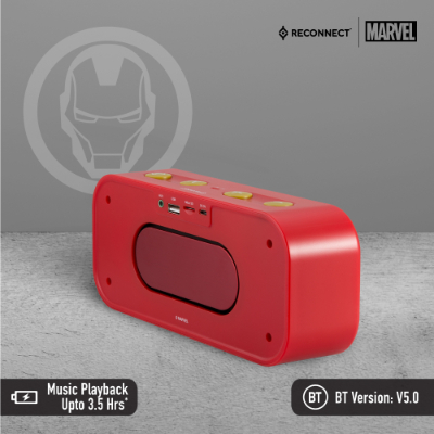 Device Protection Plan AddedReconnect Marvel Iron Man 10W Wireless Bluetooth Speaker, 3.5hrs playtime, Aux/TF/USB/FM compatible, True wireless technology, Handsfree calling, Personal speaker- DBTS101 IM