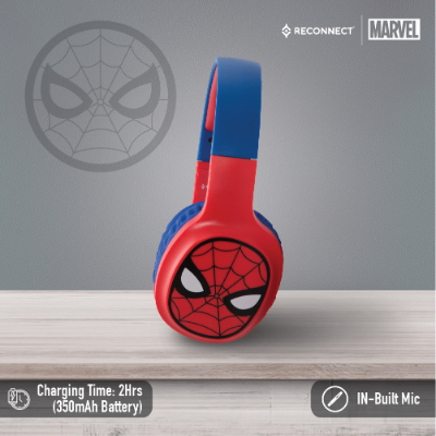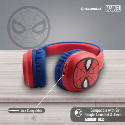 Device Protection Plan AddedReconnect Marvel Spiderman On Ear Wireless Headphone with built in mic, Sweat resistant, Siri/Alexa/GoogleOk compatible, 24hrs playtime, Super hero Design - DBTH302 SM