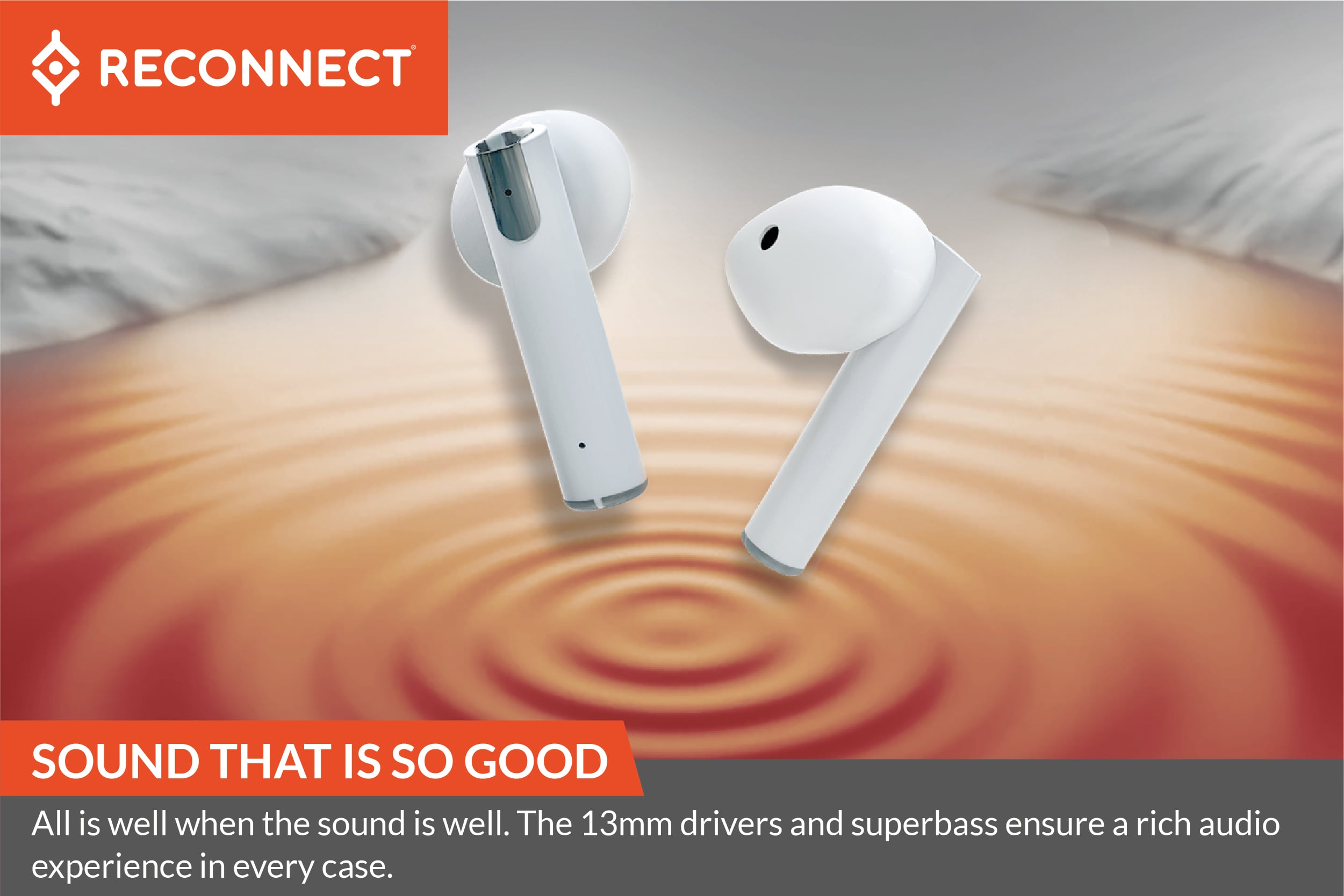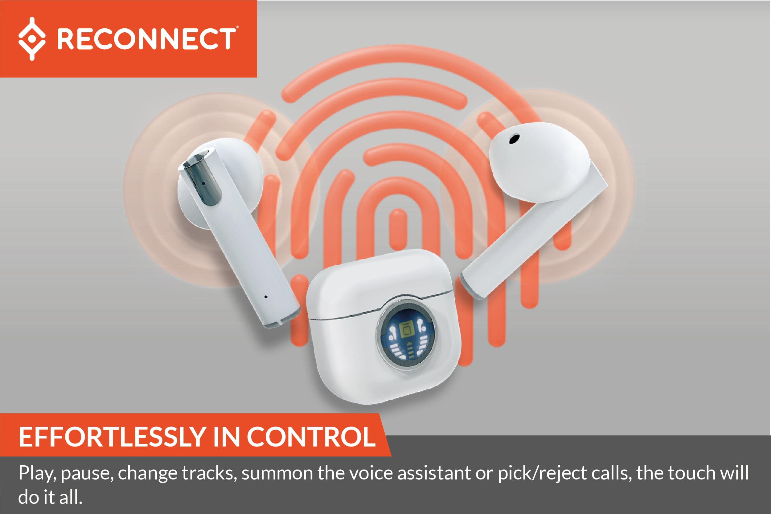 Reconnect Pro Buds Ultra TWS Earbuds, Upto 20 hrs of playtime, Swift Charging, LED Display, Quad mic with ENC technology, IPX5 Water Resistant, Bluetooth v5.3, White