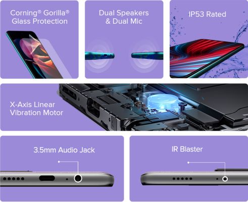 | Key Features | 16.7 cm (6.6 inch) FHD+ Display 5000 mAh Massive Battery 50MP AI Camera & 8MP Ultra-wide Camera MediaTek Dimensity 810 Processor Side Fingerprint Sensor Dual 5G SIM, 33 Watts Pro Fast charger MIUI 12.5 Operating System, 90 Hz Refresh Rate Dual speakers & Dual Mic, IP53 Rated |