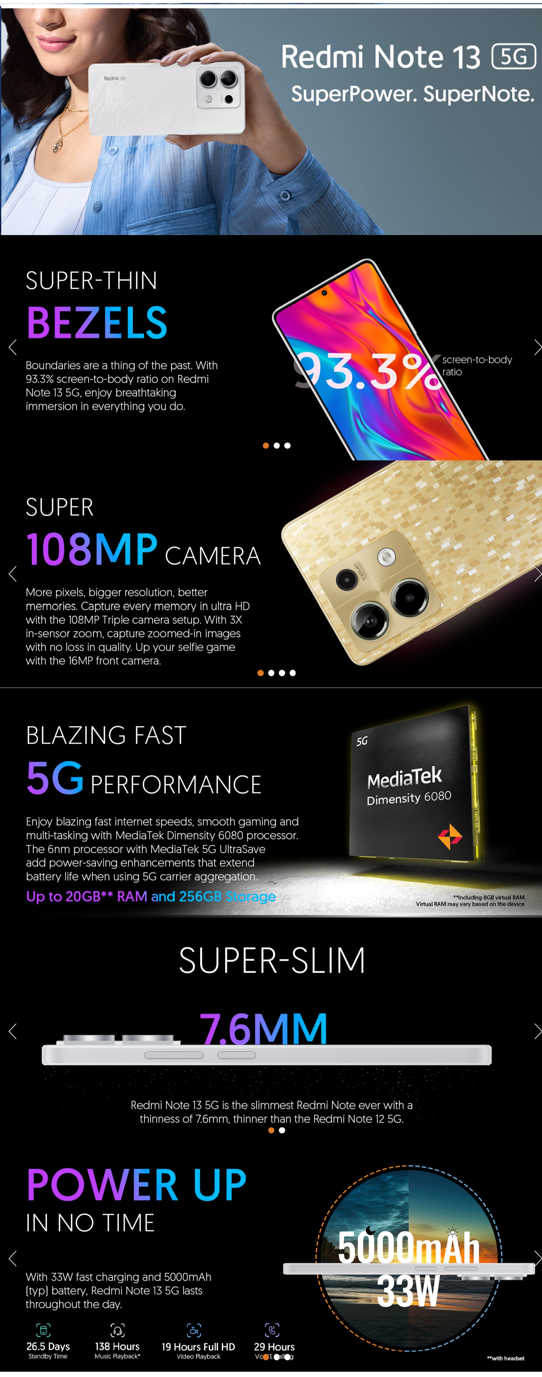 * This Redmi Note 13 5G mobile phone image is for illustration purpose only. Actual image may vary.