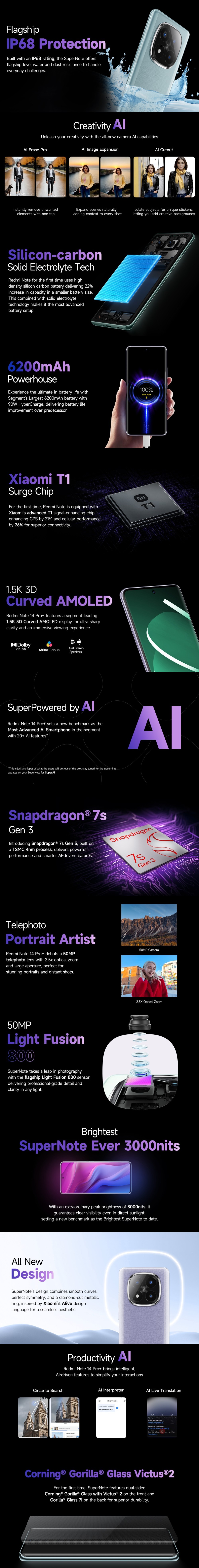 * This Redmi Note 14 Pro+ 5G mobile phone image is for illustration purpose only. Actual image may vary.