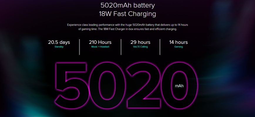 Experience class leading performance with the huge 5020mAh battery that delivers up to 14 hours of gaming time. The 18W Fast Charger in-box ensures fast and efficient charging.