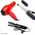 RIBQO Professional 6130 Hair Dryer 1800 Watt (Red) and NHC-522 Hair Straightener and 471B Hair Curler