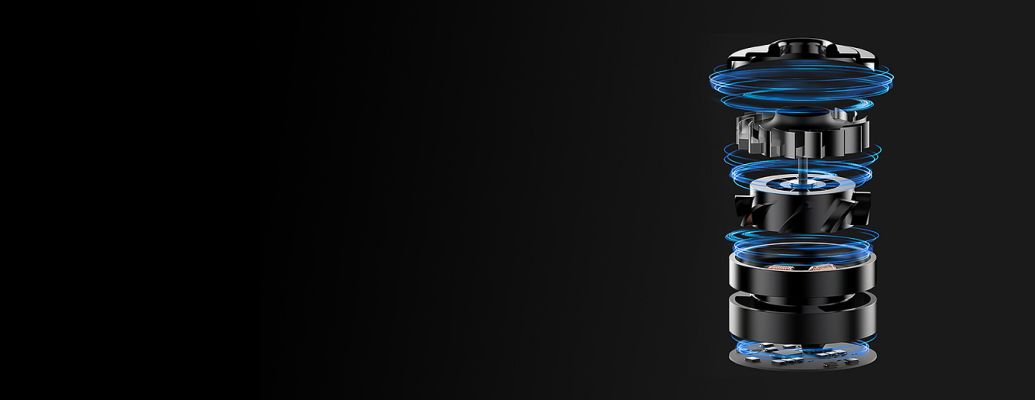 Classic multi-stage cyclone duct structure of the product is combined with high-power brushless DC motor to ensure powerful suction. In addition, when the enhanced mode is switched on, cyclone suction is generated where instantaneous air volume reaches 950 L/min. It increases the effectiveness of the product manifolds. In order to offer premium and smooth experience, the product is optimized with cutting-edge noise reduction technology. It brings down the noise to as low as 72dB (A), thus, further enriching the user experience.