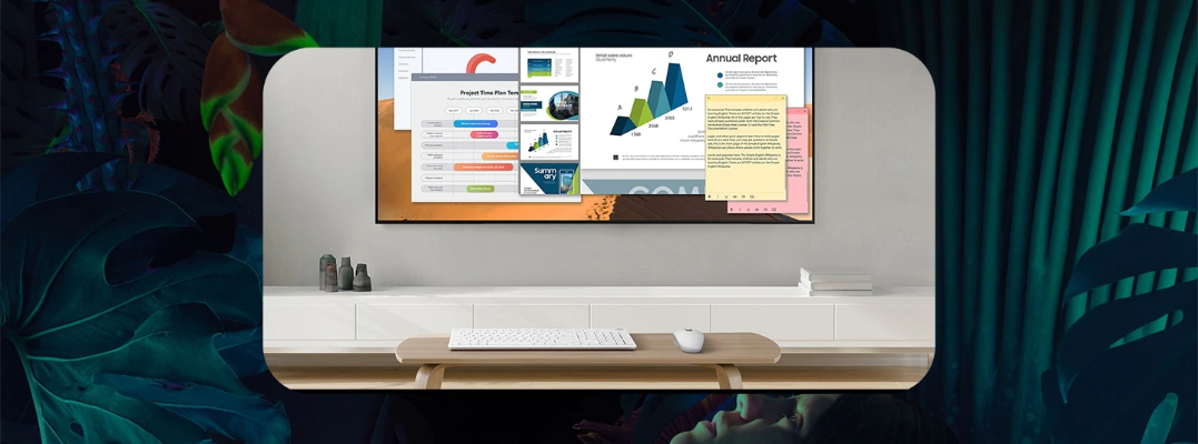Mirror your computer’s display wirelessly on the TV screen. Also, tap into your office PC to access files or seamlessly work on documents using Microsoft Office 365.