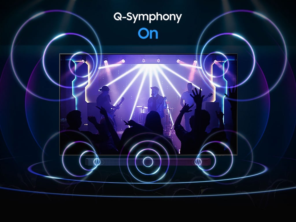 Surround yourself with sound from your TV and Soundbar orchestrated in harmony. Q-Symphony technology allows TV and soundbar speakers to operate simultaneously for a better surround sound effect, without muting the TV speakers