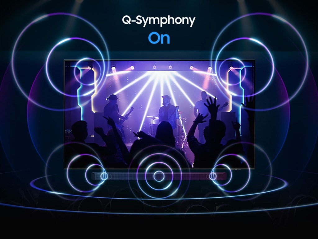 Surround yourself with sound from your TV and Soundbar orchestrated in harmony. Q-Symphony technology allows TV and soundbar speakers to operate simultaneously for a better surround sound effect, without muting the TV speakers.