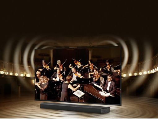 Surround yourself with sound from TV and soundbar orchestrated in harmony. Q Symphony uniquely allows TV and soundbar speakers to operate simultaneously for better surround effect without muting TV speakers.