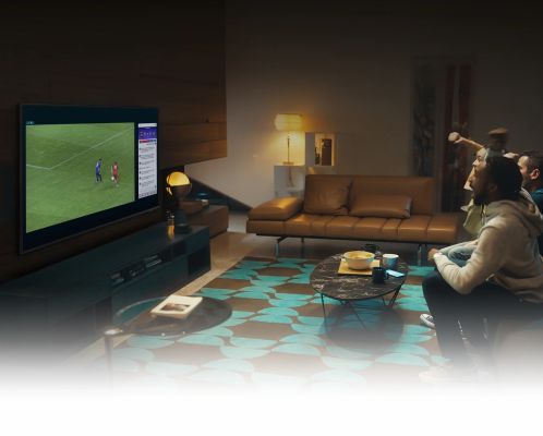 Surround yourself with sound from TV and soundbar orchestrated in harmony. Q-Symphony uniquely allows TV and soundbar speakers to operate simultaneously for better surround effect without muting TV speakers.
