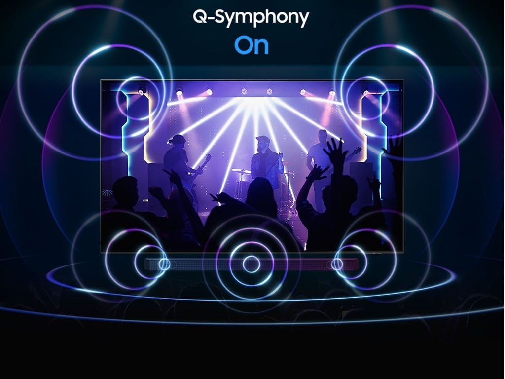 Surround yourself with sound from your TV and Soundbar orchestrated in harmony. Q-Symphony technology allows TV and soundbar speakers to operate simultaneously for a better surround sound effect, without muting the TV speakers.