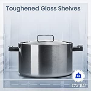 It's safety first with the toughened glass shelves designed and tested to hold a weight of up to 175 Kg safely.