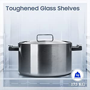 It’s safety first with the toughened glass shelves designed and tested to hold a weight of up to 175000 gram (175 Kg) safely.