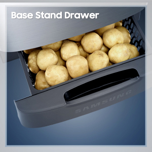 Keep vegetables at room temperature much more easily. There is a large Base Stand Drawer in the lower part of the refrigerator, a convenient place to store all of your food items that don’t need cooling, such as onions and potatoes. And you won’t use extra baskets or waste kitchen space.