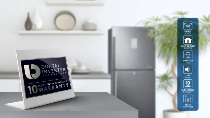 Samsung guarantees the durability of its energy efficient Digital Inverter Compressor. Always active, it automatically adjusts its speed to meet cooling demand, ensuring a trouble-free, longer-lasting refrigerator. *10 year warranty is limited to the compress or only.